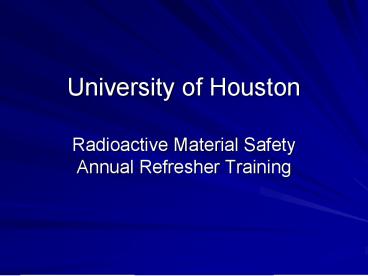 - Radioactive Material Safety Annual Refresher