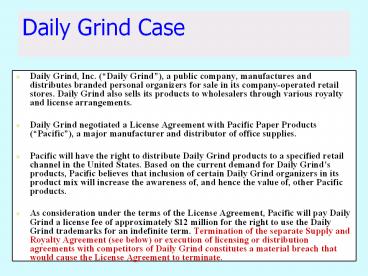 royalty and license arrangements. - Daily Grind negotiated a License Agreement with