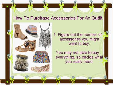 There are many different types of fashion accessories. When buying for fashion accessories, you can find your most beautiful and stylish look by knowing the colors, design and styles which perfect match your outfit. – PowerPoint PPT presentation
