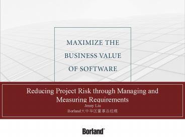 Title: Reducing Project Risk through Managing and Measuring Requirements