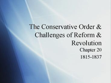 1The Conservative Order Challenges of Reform
