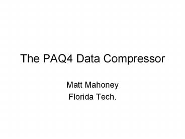 Destasio for benchmarking PAQ4 - Jason Schmidt, Eugene Shelwien (ASH, PPMY) for