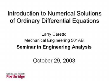 <Notice: Removed> Introduction to Numerical Solutions of Ordinary Differential Equations PowerPoint PPT Presentation