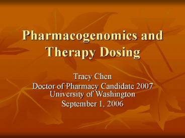 <Notice: Removed> Pharmacogenomics and Therapy Dosing PowerPoint PPT Presentation