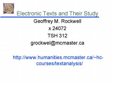Electronic Texts and Their Study PowerPoint PPT Presentation