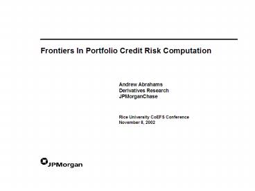 1Frontiers In Portfolio Credit Risk Computation