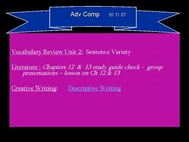 Vocabulary Review Unit 2: Sentence Variety PowerPoint PPT Presentation