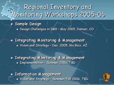 1Regional Inventory and Monitoring Workshops