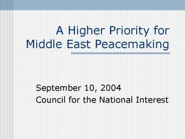 A Higher Priority for Middle East Peacemaking PowerPoint PPT Presentation