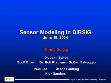 Sensor Modeling in DIRSIG June 10, 2004 PowerPoint PPT Presentation