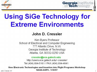 <Notice: Removed> Using SiGe Technology for Extreme Environments PowerPoint PPT Presentation