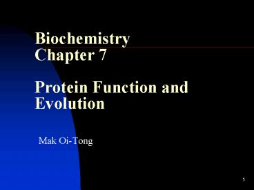Title: Biochemistry Chapter 7 Protein Function and Evolution