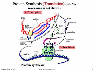 1Protein Synthesis (Translation) (mRNA processing