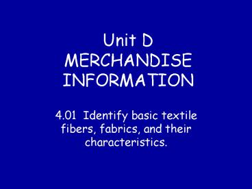 Title: Unit D MERCHANDISE INFORMATION
