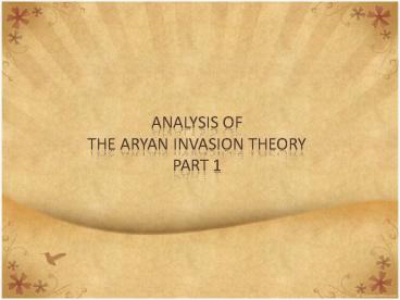 1Analysis of The ARYAN INVASION THEORY Part 1