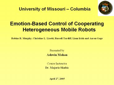 Title: Emotion-Based Control of Cooperating Heterogeneous Mobile Robots