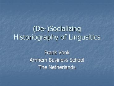<Notice: Removed> (De-)Socializing Historiography of Lingusitics PowerPoint PPT Presentation