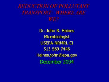 REDUCTION OF POLLUTANT TRANSPORT WHERE ARE WE?