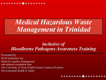 <Notice: Removed> Medical Hazardous Waste Management in Trinidad inclusive of Bloodborne Pathogens Awareness Training PowerPoint PPT Presentation
