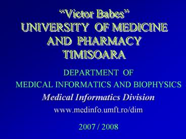 Victor Babes UNIVERSITY OF MEDICINE AND