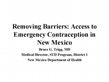 Title: Removing Barriers: Access to Emergency Contraception in New Mexico
