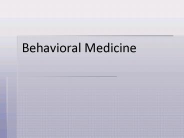 Title: Behavioral Medicine