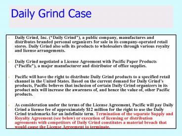 royalty and license arrangements. - Daily Grind negotiated a License Agreement with