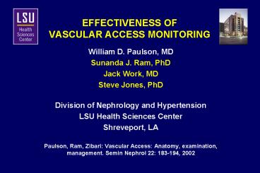 1EFFECTIVENESS OFVASCULAR ACCESS MONITORING