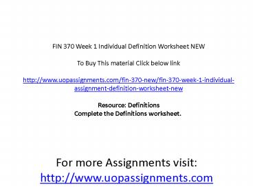 Title: FIN 370 Week 1 Individual Definition Worksheet NEW