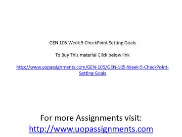 1GEN 105 Week 5 CheckPoint Setting GoalsTo Buy