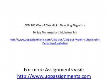 Title: GEN 105 Week 4 CheckPoint Detecting Plagiarism
