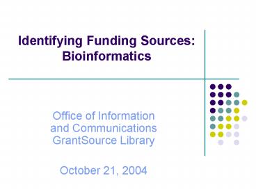 (Click on Bioinformatics) - Bioinformatics Funding Opportunities