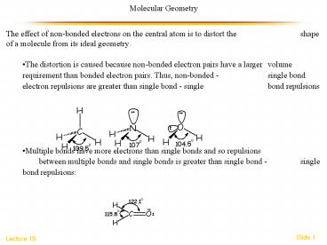 for bonded atoms and non- bonded electron pairs - Groups in the trigonal plane have two 120o