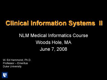 <Notice: Removed> Clinical Information Systems II PowerPoint PPT Presentation