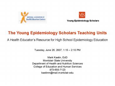 <Notice: Removed> The Young Epidemiology Scholars Teaching Units PowerPoint PPT Presentation