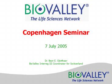 1Copenhagen Seminar 7 July 2005 Dr. Beat E.