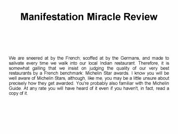 Robert looked at me with a bit of a scowl. "Wheatmeal mean?" I laughed. "Robert, that's a crock. Listen, I'm not saying your visioning and affirmations aren't useful, and maybe very effective, but what do you do with information that suggests something contrary? Just blowing it off does not seem spiritually valid." He shrugged as Danny and Nathaniel both jumped into the conversations with their theories. Before long the three had once again spun up the dialogue. It was as if my question could simply not be entertained. Before long I had checked out of their debate as my own ruminations Manifestation Miracle Review captured my attention. What does my experience tell me? That there is power in our dreams and desires. That every thought, conscious or not, is a prayer of its kind. That through some strange magic the world will conform to our perceptions, whether in fact or by interpretation. Especially I have seen the value of feedback from reality. If there is a mismatch between my vision and life as it manifests, there is something amiss within me.