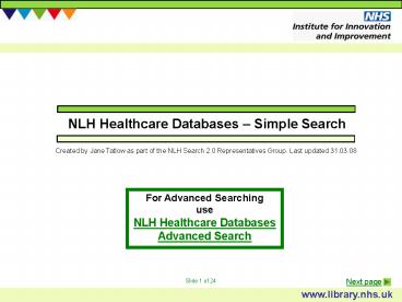 http//www.library.nhs.uk/about/feedback.aspx - NLH Helpdesknlhenquiries_at_institute.nhs.uk