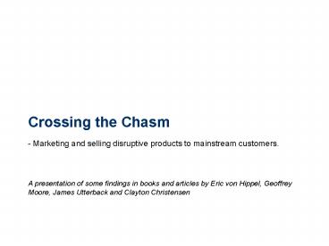 Adopters, hence the big Chasm. - The Early Adopters want a technical change agent