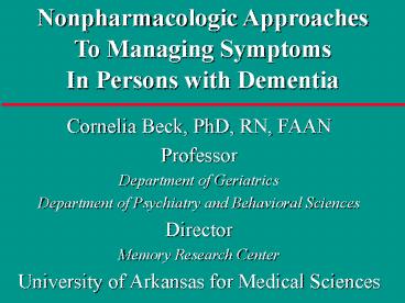 Title: Nonpharmacologic Approaches to Managing Symptoms in Persons with Dementia