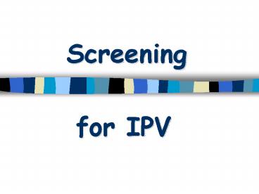 - IPV should be
