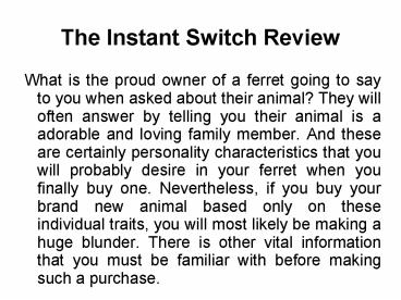 Title: The Instant Switch Review