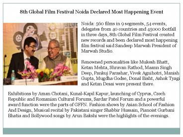 Title: 8th Global Film Festival Noida Declared Most Happening Event