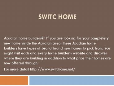 Acadian home builders If you are looking for your completely new home inside the Acadian area, these Acadian home builders have types of brand brand new homes to pick from. You might visit each and every home builders website and discover where they are building in addition to what price their homes are now offered through.