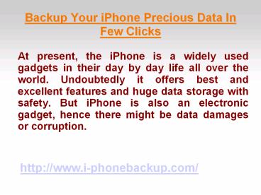 Title: Backup Your iPhone Precious Data In Few Clicks