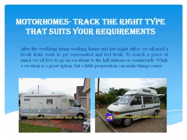 1Motorhomes- Track the right type that suits your