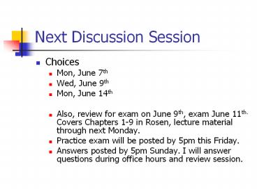 Title: Next Discussion Session
