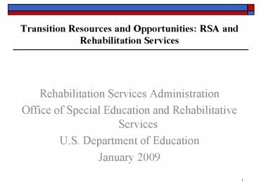 Title: Transition Resources and Opportunities: RSA and Rehabilitation Services
