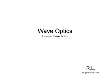 <Notice: Removed> Wave Optics Investor Presentation PowerPoint PPT Presentation