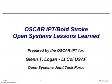 <Notice: Removed> OSCAR IPTBold Stroke Open Systems Lessons Learned PowerPoint PPT Presentation
